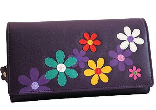 Large Leather Flap Over Picture Front Purse 2 Front Pockets Central Zip Coin Plus2 Open Compartments 7 C.Card Slots 1 I.D Back Pocket 17x10x3 cms leather is a natural material colours can vary