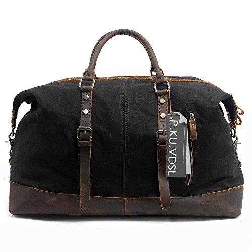 - ★ 100% GUARANTEE -- P.KU.VDSL Water Repellent Travel Duffles, High Quality Canvas & Genuine Leather Straps & Smooth Zippers. It is strong, roomy & durable enough. This is a top quality weekend bag which is in tough canvas and real leather that can be carried in the hand or worn over the shoulder.